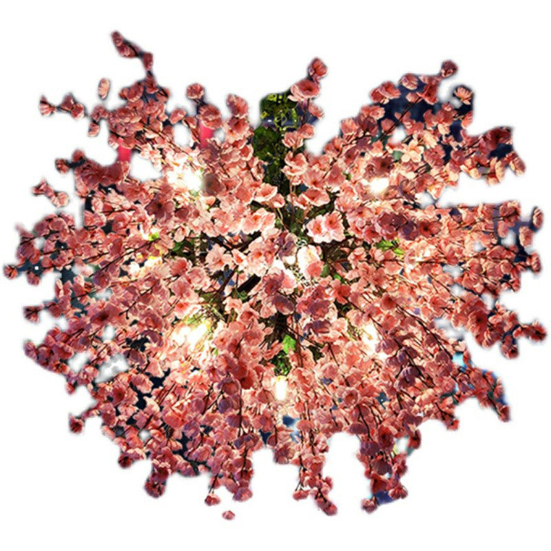 This product is a chandelier made of metal with a blue and pink color scheme. It is Art Deco style, shadeless, and has a chain mount. The chandelier is 21.5" x 23.5" x 18" and 39" long, with a 27.5" long chain. It has 3 lights and uses either an E12 or E14 bulb base.