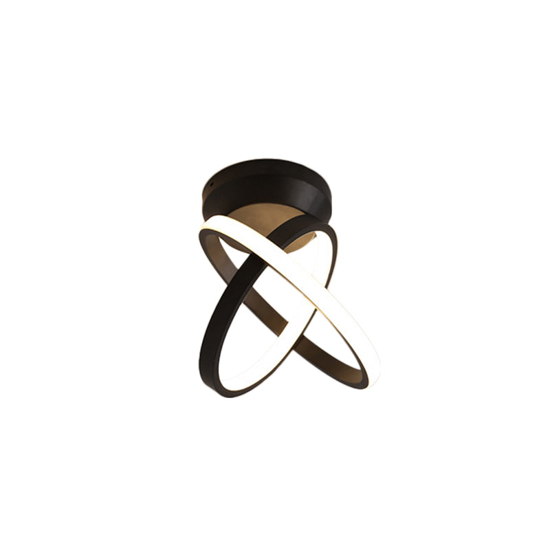 This product is a ceiling lamp that is minimalist in design and made of metal. It is black and white in color and uses LED lighting. The light is warm white in color and the fixture is rated for a maximum of 39 watts. The voltage is 110V-120V or 220V-240V.