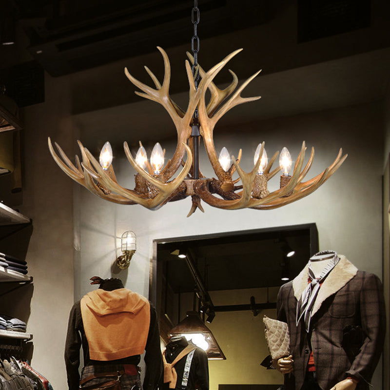 This traditional chandelier features a classic design with 3, 5, or 6 lights. The candelabra hanging pendant is made of resin and is available in khaki. The 110V-120V or 220V-240V voltage is compatible with LED, incandescent, or fluorescent bulbs (not included).