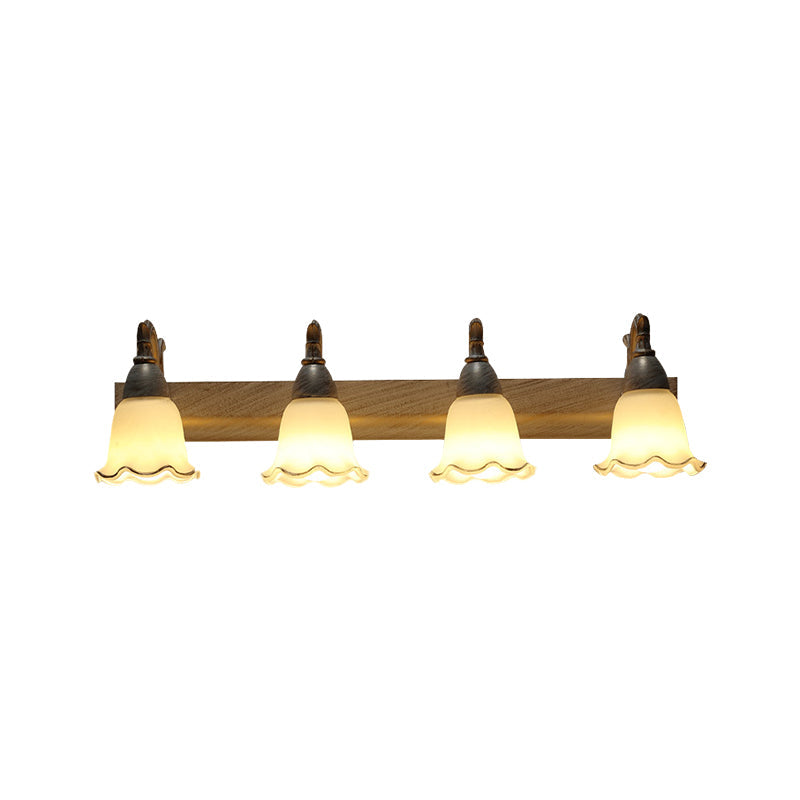 This traditional style petal shade wall lighting with beautiful white and copper color is an excellent addition to both indoor and outdoor spaces. It features a wall-mounted design with one to four heads, perfect for providing ample lighting in all directions. The clear frosted glass shade diffuses the light, making it easier on the eyes, and the metal frame with rustic finish adds a vintage flair to the decor. This wall light is available in different sizes, from 4 inches to 25.5 inches, with a fixture height of 9 or less inches.