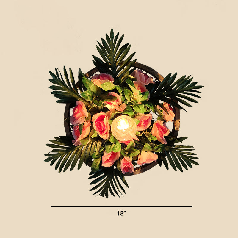 Industrial Metal Wall Mounted Lamp with Artificial Plant Décor - Single Wagon Wheel Wall Light