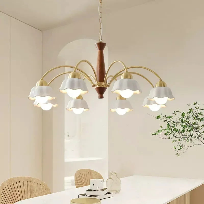 KEY FEATURES • Handcrafted ceramic flower lampshade with graceful tapered form • Solid wood, ceramic, and iron construction for strength and style • LED bulbs included for bright, energy-efficient illumination (non-dimmable) • Semi-flush pendant installation ideal for contemporary interiors • Voltage: 110 V or 250 V (non-polarized) • Working Temperature: -20 °C to 60 °C • Elegant Nordic-inspired design blending natural and modern elements • One-year warranty for lasting quality assurance