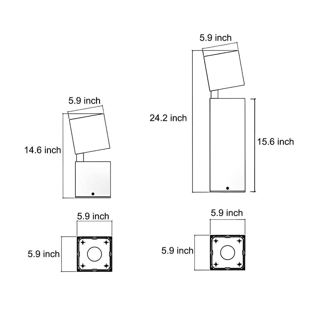 24.2" Model: 5.9" W × 5.9" D × 24.2" H, 6.61 lb