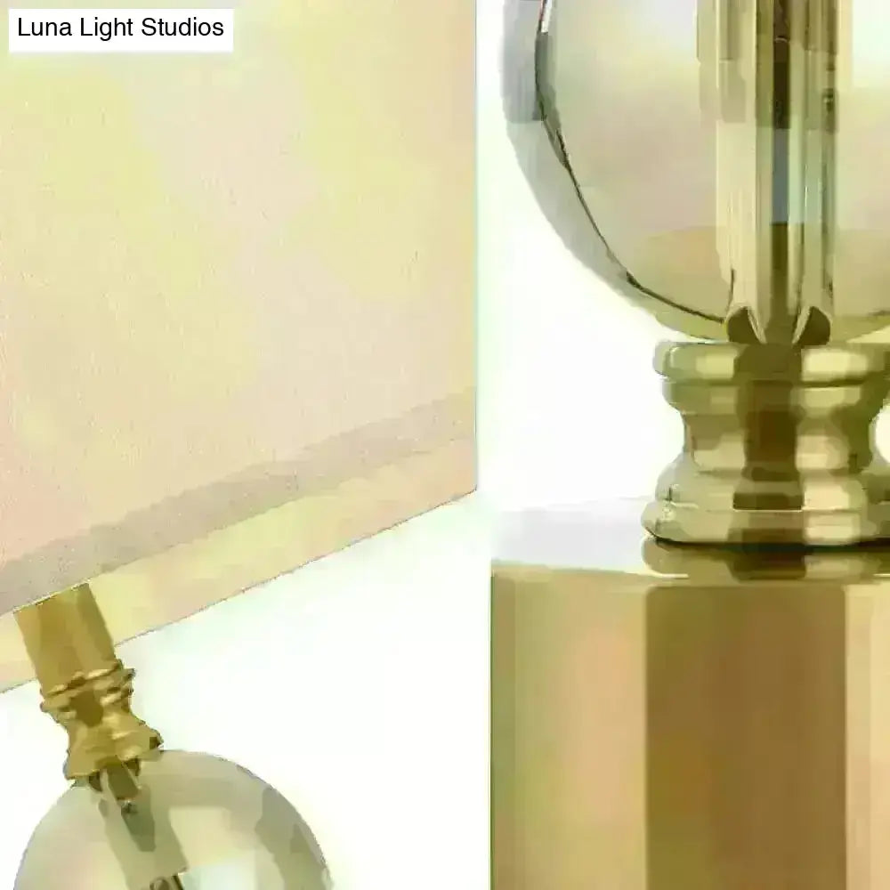 Zaniah - 1-Head 1 Head Night Lamp Classic Bedroom Crystal Nightstand Light with Round Fabric Shade in Brass