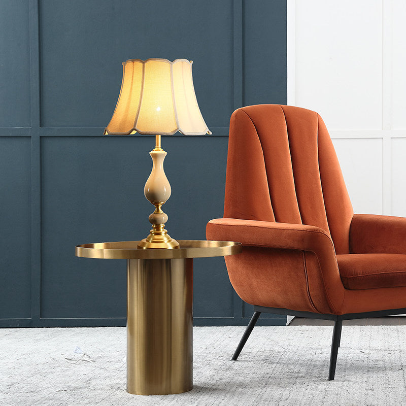 This product is a beautiful and traditional floor lamp that would be a perfect addition to any living room or bedroom. The white shade is made of a scalloped fabric that adds a touch of elegance, while the white ceramic base adds a touch of simplicity. This lamp can accommodate one E26/E27 bulb (not included) and is compatible with LED, incandescent, or fluorescent light bulbs. It has a voltage of 220V-240V 110V-120V.