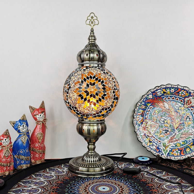 Introducing Ellie, the epitome of vintage charm. This handcrafted desk lamp is a true masterpiece, perfect for adding a touch of elegance to your space. The stunning glass ball design exudes a timeless appeal, while the antique brass finish adds to its vintage allure. With one head, this nightstand light provides just the right amount of illumination for reading or working on your laptop. The sturdy base ensures stability, while the adjustable arm allows you to direct the light wherever you need it most. Whether placed in your bedroom, office, or living room, Ellie will effortlessly enhance any decor style. Illuminate your world with Ellie and enjoy the enchanting ambiance it creates.