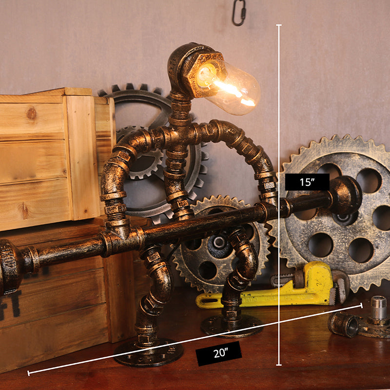 This product is perfect for anyone who loves antique style décor with a modern twist. The "Metal Antiqued Bronze Table Light Water Pipe Creative Steampunk Style Nightstand Lamp" is made with a metal water pipe for the body of the lamp and a bronze finish for an antiqued look. This lamp is also available in a black finish. The gooseneck tube design makes it easy to direct the light where you need it, and the shadeless style allows the light to shine brightly. This lamp is also available in a 1-light or 2-light option.