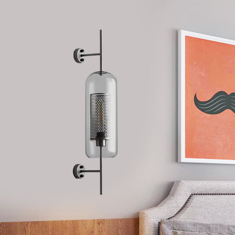 This wall light is perfect for anyone who wants to add a touch of sophistication to their home. The clear glass oval sconce features a mesh screen that gives it a colonial look. The light is available in bronze and silver gray. It has one light bulb and is 12“/16.5” tall. The light bulb is not included.