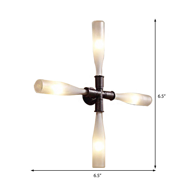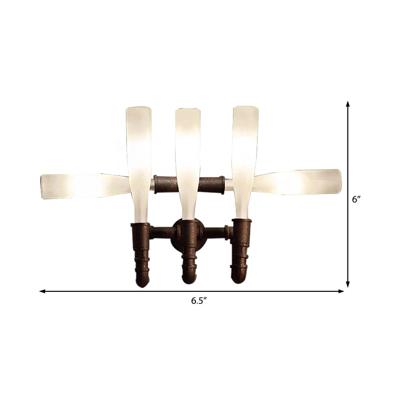 This sconce lamp casts a warm and inviting glow, perfect for a dining room or hallway. The lamp is made of metal with a rust finish and takes four or five G9 bulbs, not included. The dimensions are 6.5"W x 9"H x 6"D.