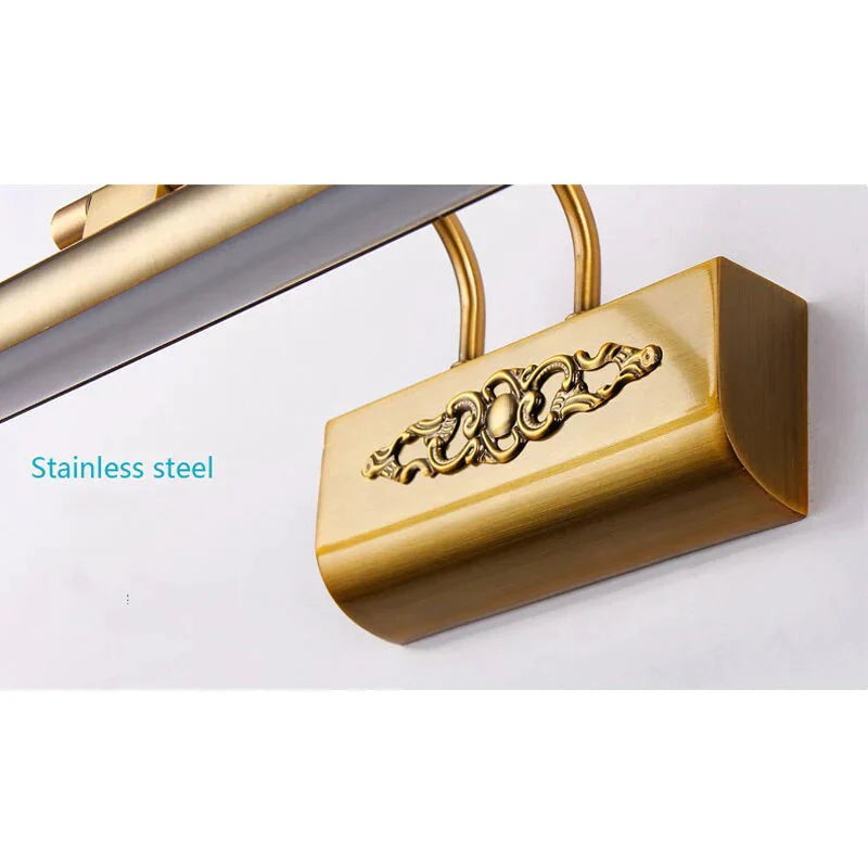 Europe Led Mirror Lamp Bathroom Wall Decor Lamp Retro Bronze Carved Cosmetic Light Rockable Picture Lighting 500mm 8W Lighting