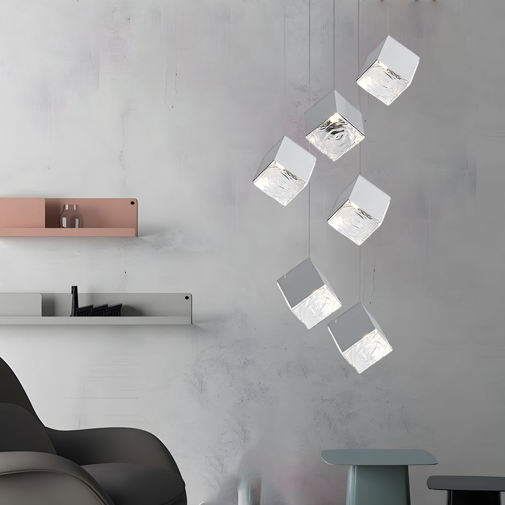 1/3/6/9-Light Multi Glass Ice Cube Metallic Staircase Chandelier in Gold/Chrome