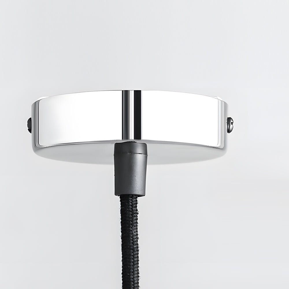 SPECIFICATIONS • Size: 10.4" Diameter × 8.3" Height • Weight: 4.85 lb • Material: Iron, Glass • Finish Options: Chrome or bronze • Light Source: 40 W tungsten filament bulb, Warm White 3000 K • Voltage: 110 V or 250 V (non polarized) • Working Temperature: -20 °C to 60 °C • Installation: Hardwired pendant mount • Maintenance: Wipe gently with a soft dry cloth; replace bulb as needed