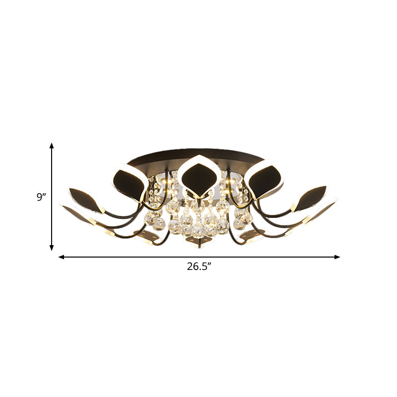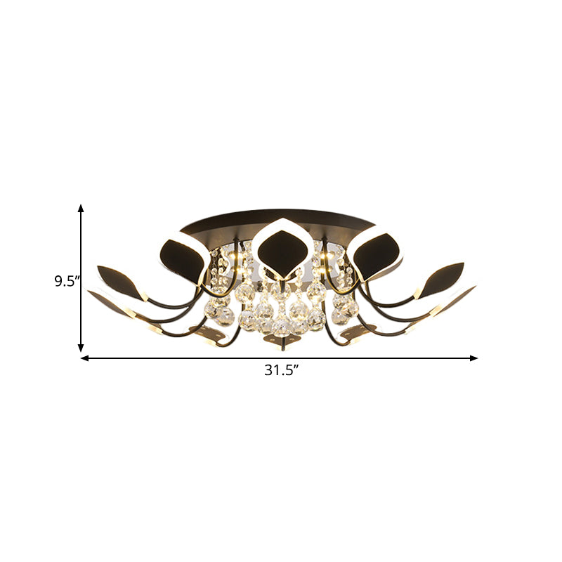 This contemporary ceiling light is the perfect fixture for adding a luxurious touch to your home. It visually stands out with its many heads, suspended at different heights that feature sparkly black and white raindrop crystals and provides a beautiful diffusion of warm white light. Featuring 10 or 12 adjustable heads with a total fixture width of 26.5" to 31.5" and height of 9" to 9.5" depending on the number of heads, this flushmount ceiling lamp is suitable for 25" to above size ceilings. Crafted from beautiful crystal, it oozes sophistication and charm fitting for any modern abode. The light is powered by LED bulbs with color temperature of about 2700K, providing a cozy and inviting light. This lighting also features an SMD bulb base and a lower voltage wattage of 39W max, ensuring it is safe and energy-efficient for your home. Install it in your hallway or lounge area and enjoy an ambience like no other.